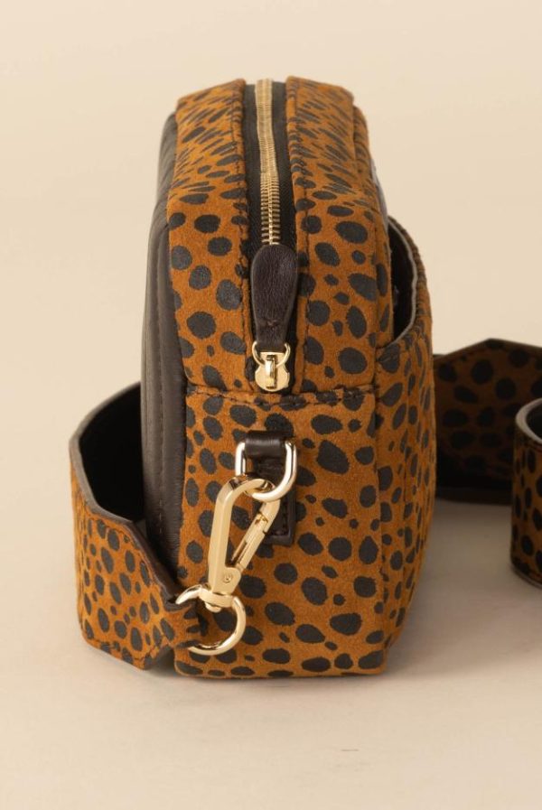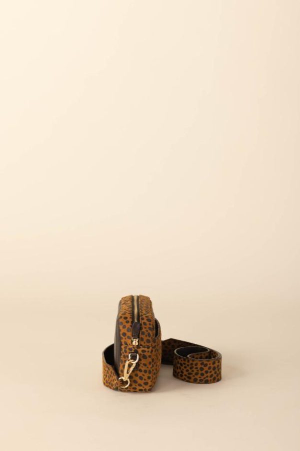 Le sac Cléo guépard cognac est très pratique de par son format et élégant de par son effet matelassé sur le devant.